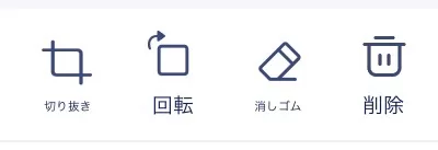 回転:回転をタップすると、表示されている画像がくるくる回すことができます。