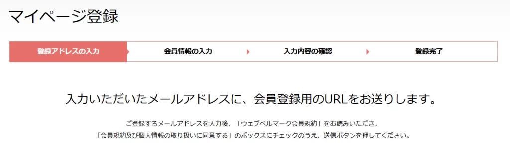 サイトのマイページ登録から、メールアドレスの登録行います。